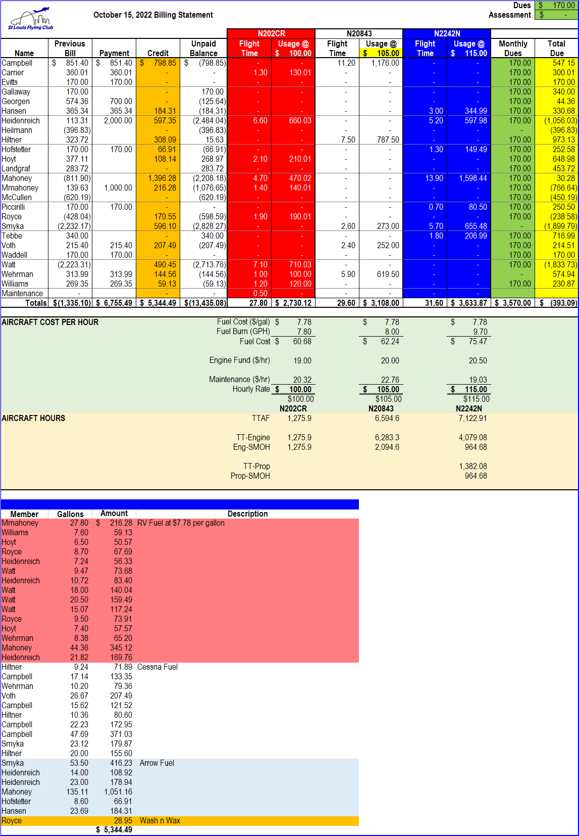 - Members, please note that the amounts in the table below are different from those presented at the meeting. If you purchased fuel, likely amounts you owe to the club have decreased.