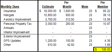 - Improvements - Monthly/Annual Fixed charges – non-aircraft expense = Dues and Assessments